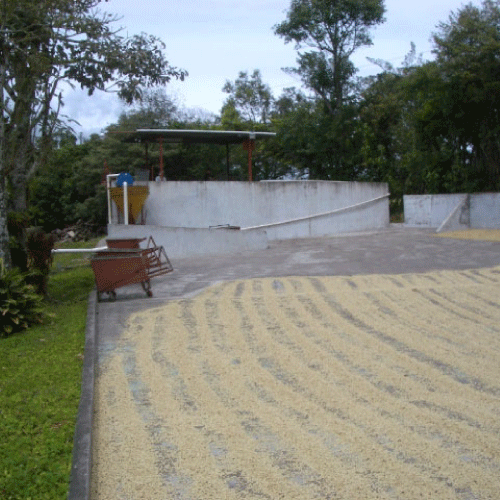 6時間から8時間発酵後コンクリート・パティオで5日間天日乾燥し、水分を30%に落としてから乾燥機によって乾燥されます。