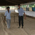 まず原料となる最良のアラビカチェリーABを選別します。(インドではナチュラル製法を「チェリー」と呼ぶ。)アラビア海に面するマンガロール沿岸部にある、換気機能の整ったGodownの床(窓の面積が通常より多く取られた専用倉庫)に均一に10センチ程の厚さに広げられます。